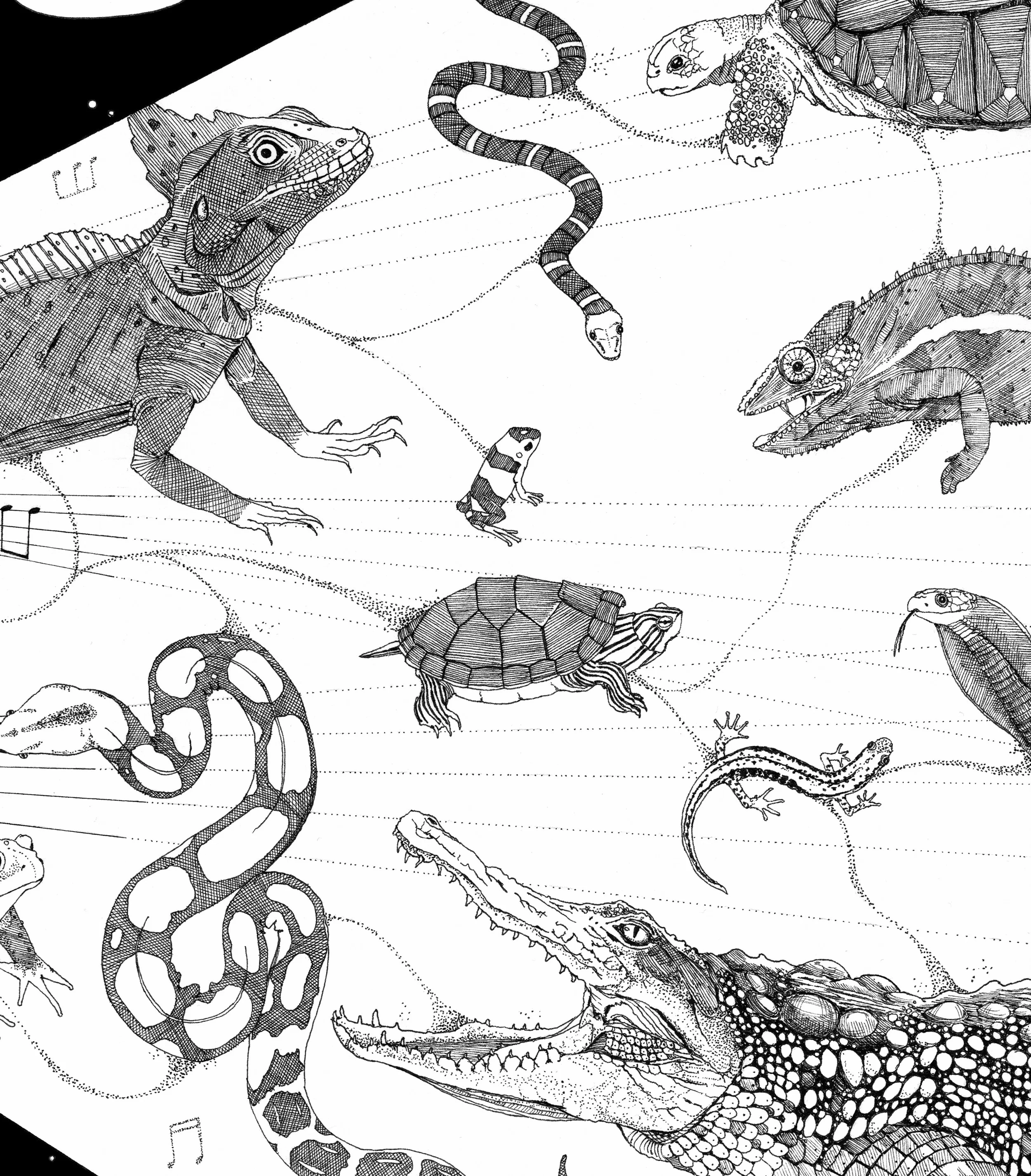 A Tale from Beginningless Time is a creation myth in graphic vignette form. The story follows the 1,084th Conference of Creative Beings, an event during which celestial beings create the living creatures that will populate planet earth. They do this by playing various strange musical instruments.